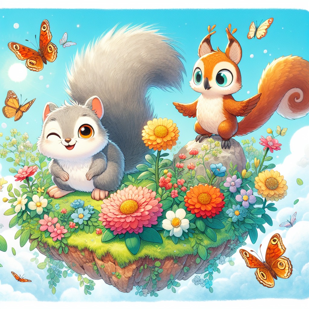A spirited little squirrel named Pippin discovers a hidden pathway that leads to a mystical floating island where flowers grow in mid-air and butterflies sparkle like jewels. When the island starts losing its colors, Pippin teams up with a wise old owl named Oliver and a playful breeze named Breezy to uncover the mystery of the island’s fading magic. Together, they embark on an adventure filled with exploration and friendship, learning that cooperation can renew not only gardens but also the hearts of those who care for them.