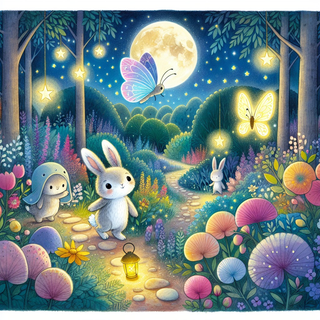 In a twinkling garden where flowers bloom under the gentle glow of the moon, a curious little bunny named Pippin discovers a hidden path leading to a secret realm of starry butterflies. When the butterflies begin to fade and their luminous light dims, Pippin embarks on a nighttime adventure to find the magical Crystal Dewdrop that will restore their glow. Along the way, he learns about the magic of renewal and the wonders of nature, making new friends and exploring the beauty of the night sky.