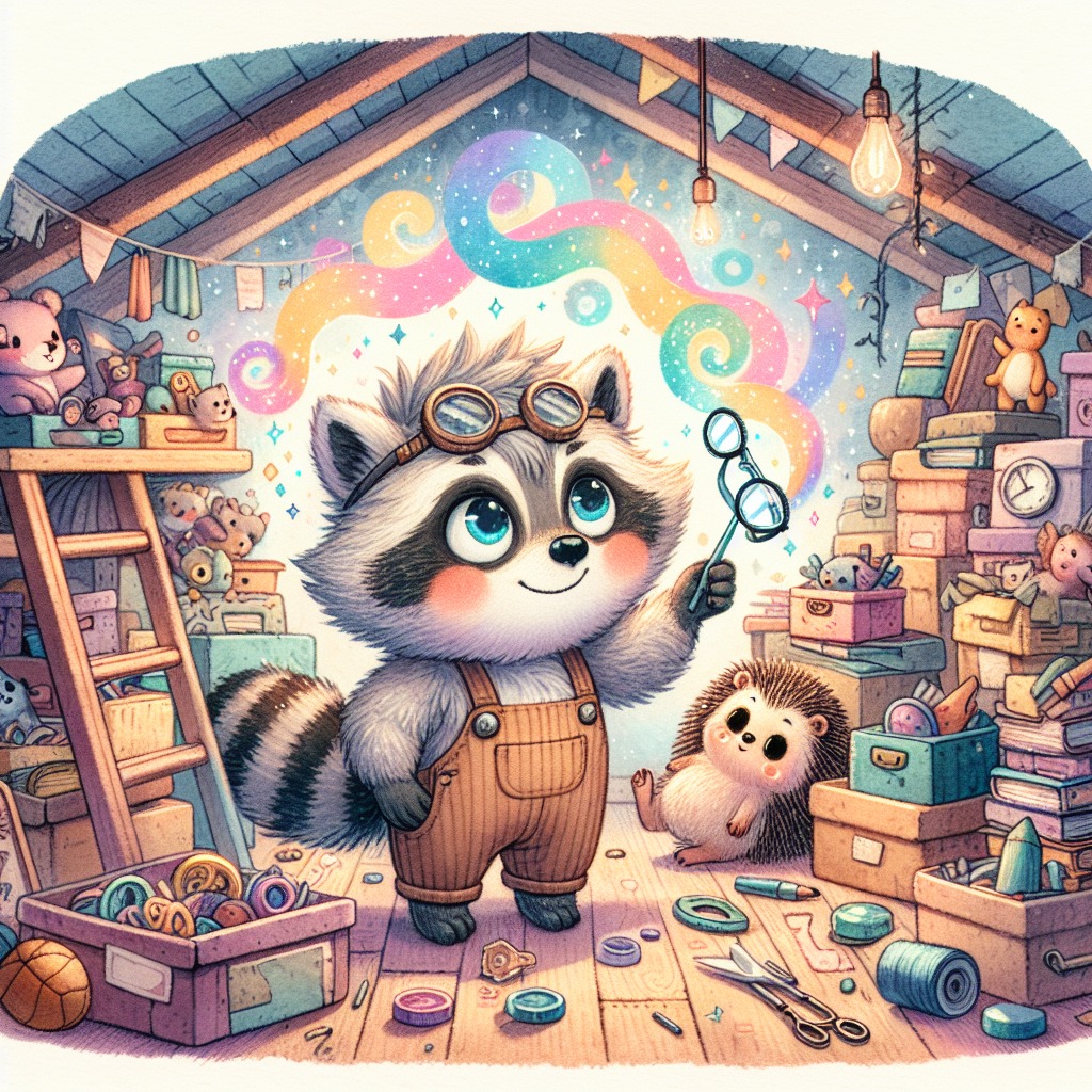 In a cozy little town where the trees whispered secrets, lived a clever raccoon named Jasper. One sunny afternoon, while exploring the attic of his home, Jasper stumbled upon a dusty old box. Curious as ever, he opened it and found a pair of sparkling glasses. 'Wow! What are these?' he exclaimed, putting them on. Suddenly, the world around him transformed! Colors danced and swirled, and he could see shimmering dreams floating in the air like bubbles. Excited, Jasper rushed outside to show his best friend, Tilly the hedgehog. 'Tilly! You won't believe what I found!' he shouted, bouncing on his little paws. Tilly peeked out from behind a bush, her big eyes wide with curiosity. 'What is it, Jasper?' she asked, her voice soft and shy. 'Look!' Jasper said, adjusting the magical glasses. 'I can see dreams!' He pointed to a glowing bubble that floated by, filled with laughter and sparkles. Tilly gasped, her heart racing with excitement. 'Can we catch them?' she asked, her shyness fading away. 'Of course!' Jasper replied, his eyes twinkling with adventure. Together, they chased the dreams through the town, laughing and playing. But soon, they noticed something strange. The dreams began to fade, disappearing into thin air. 'Oh no! We have to help our friends!' Tilly exclaimed, her little heart sinking. Jasper nodded, determined. 'Let's go to the Dreamleaf Forest! Maybe we can find a way to save the dreams!' And with that, their adventure began, filled with wonder and friendship.