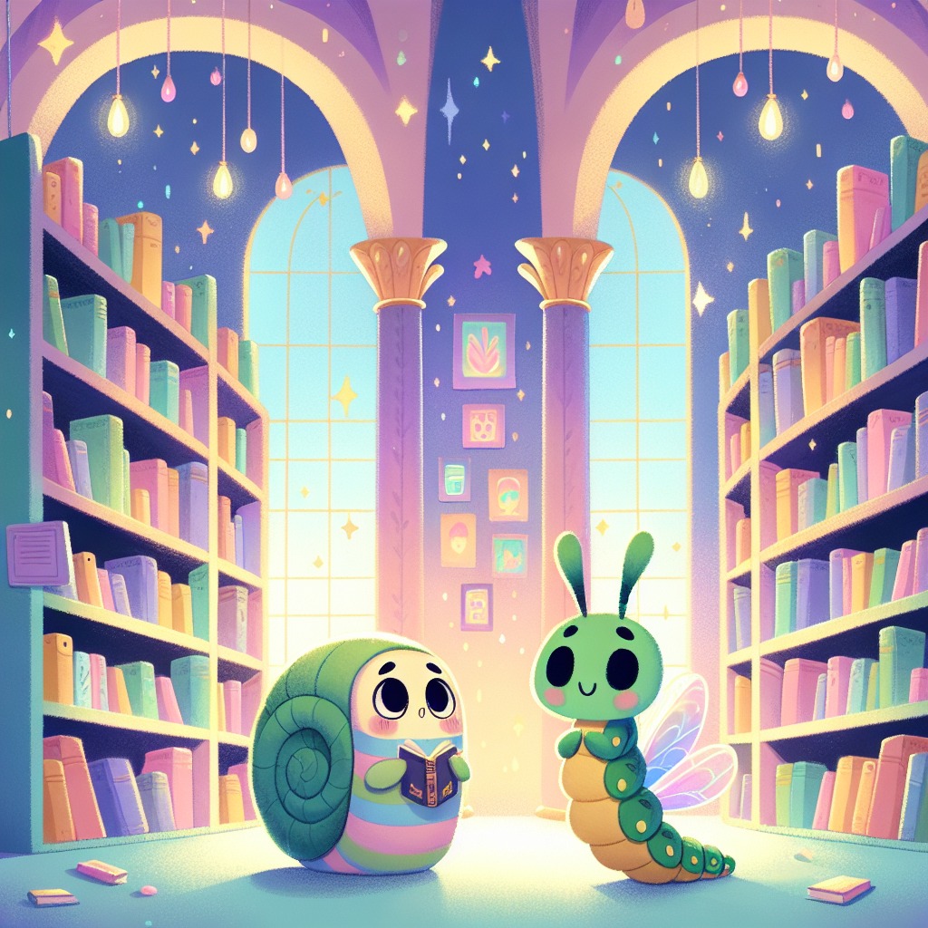 In the heart of a magical forest, there was an enchanted library filled with the most wonderful stories. Wiggly, a shy little bookworm, loved to spend her days nestled between the pages of her favorite books. One sunny morning, as she wiggled her way to her favorite reading spot, she noticed something strange. The book titled 'The Adventures of Sparkle the Unicorn' was missing! Wiggly's heart sank. 'Oh no! How can I read my favorite story without Sparkle?' she exclaimed, her big eyes wide with worry. Just then, her best friend Gus, the giggling grasshopper, hopped over. 'What’s wrong, Wiggly?' he asked, his voice cheerful and bright. Wiggly sighed, 'My favorite storybook is gone! I can’t find it anywhere!' Gus's eyes sparkled with excitement. 'Don’t worry! We can find it together! Let’s go on an adventure!' Wiggly felt a flutter of courage in her tiny heart. 'Really? You think we can?' she asked, her voice trembling a little. 'Of course!' Gus replied, bouncing up and down. 'We’ll search through the pages of the library and solve any puzzles we find along the way!' With a determined nod, Wiggly and Gus set off into the library. The shelves were tall and filled with colorful books that seemed to whisper secrets. 'Look at all these stories!' Gus chirped, hopping from one shelf to another. Wiggly smiled, feeling a little braver with Gus by her side. 'Let’s start at the Storyteller’s Corner. Maybe we can find a clue there!' As they approached the corner, the air shimmered with magic. Wiggly could feel the excitement bubbling inside her. 'This is going to be the best adventure ever!' she said, her worries fading away as they prepared to uncover the mystery of the missing storybook.