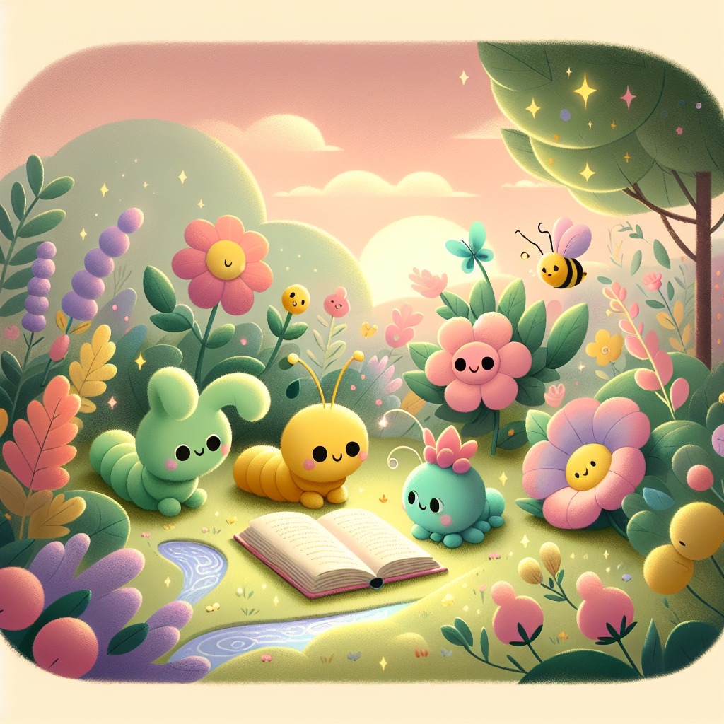 In a vibrant garden where flowers could talk and streams sparkled like diamonds, lived a little caterpillar named Lila. Lila was not just any caterpillar; she was a bookworm! Every day, she would crawl around the garden, reading stories from the tiny books she found under leaves and petals. One sunny afternoon, while exploring under a fragrant rosebush, Lila stumbled upon an ancient storybook covered in soft moss. Curious, she gently opened it. 'Wow!' she exclaimed, her eyes widening. The pages were filled with colorful illustrations of magical butterflies that once fluttered around the garden, spreading joy and laughter. 'I wonder what happened to them?' Lila thought, her mind racing with questions. Just then, a gentle breeze rustled the pages, and Lila noticed something strange. The words began to fade! 'Oh no! I must save the stories!' she cried. Determined, Lila decided she would embark on a quest to find the enchanted ingredients needed to bring the butterflies back to life. 'I can’t do this alone,' she whispered. 'I need my friends!' With a heart full of hope and a head full of stories, Lila set off to find Petal and Buzzy, ready to share her exciting discovery.