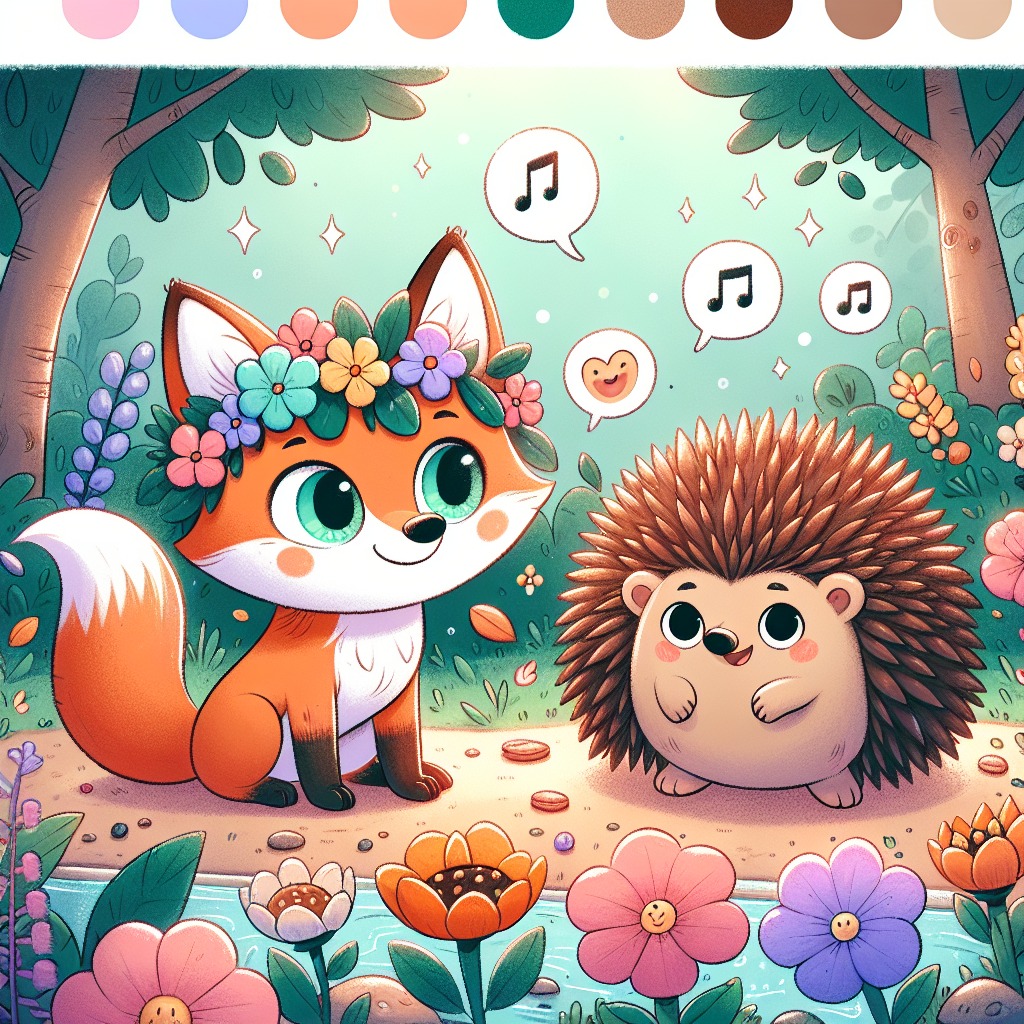 In the heart of a vibrant forest, where the flowers sang sweet melodies and the streams sparkled like diamonds, lived a young fox named Blossom. Blossom was not just any fox; she had a heart full of dreams and a mind bursting with creativity. One sunny morning, she decided it was the perfect day to create the most colorful garden the forest had ever seen. "Prickles! Come quick!" she called out to her best friend, a curious little hedgehog named Prickles. Prickles waddled over, his tiny feet pattering on the soft grass. "What’s up, Blossom?" he asked, his eyes wide with excitement. "I want to plant a garden filled with all the colors of the rainbow!" Blossom exclaimed, her tail wagging with joy. "We can use the seeds from the singing flowers!" Prickles scratched his head, thinking hard. "That sounds amazing! But how will we make it colorful?" Blossom grinned. "We’ll gather seeds from the red tulips, bluebells, and yellow daisies! And we can ask the butterflies to help us pollinate the flowers!" "Great idea! Let’s get started!" Prickles cheered. Together, they set off on their adventure, gathering seeds and dreaming of the beautiful garden they would create. Little did they know, their journey would soon lead them to a mystery that needed solving.